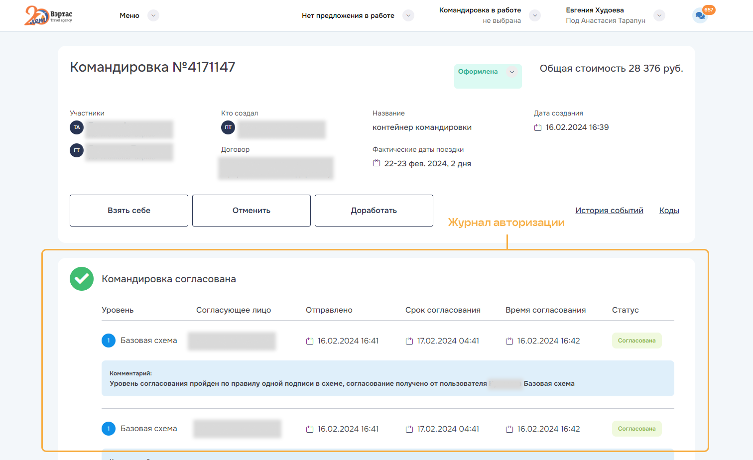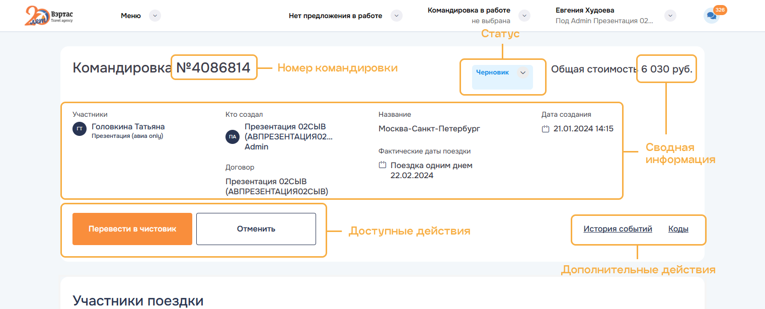 Командировка с таким статусом позволяет выполнить следующие действия: