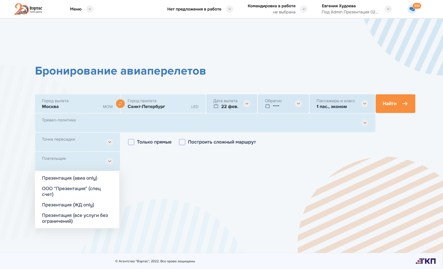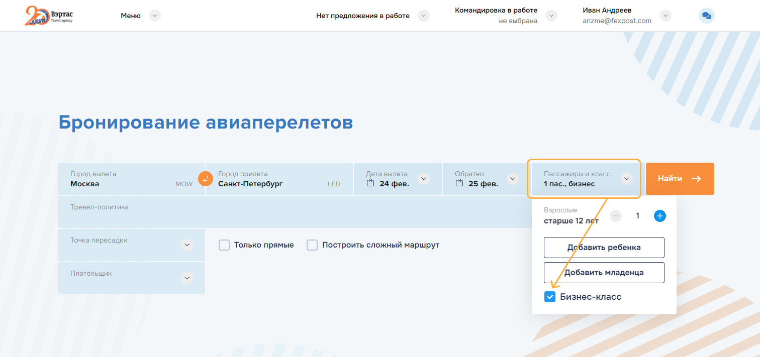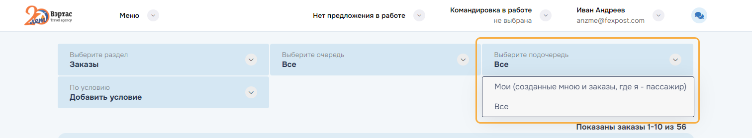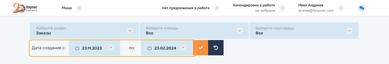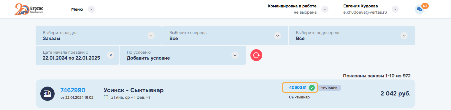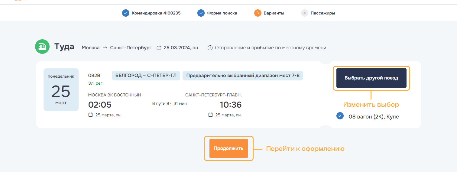 оформление услуг по всем заказам командировки. Успешно оформленные заказы переводятся в состояние