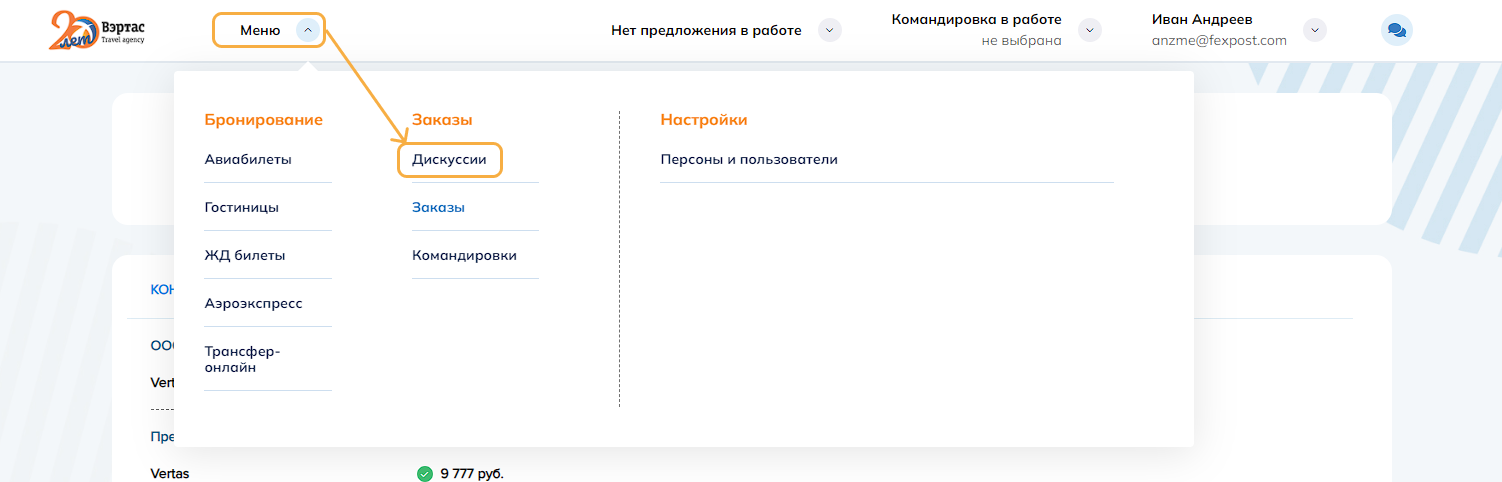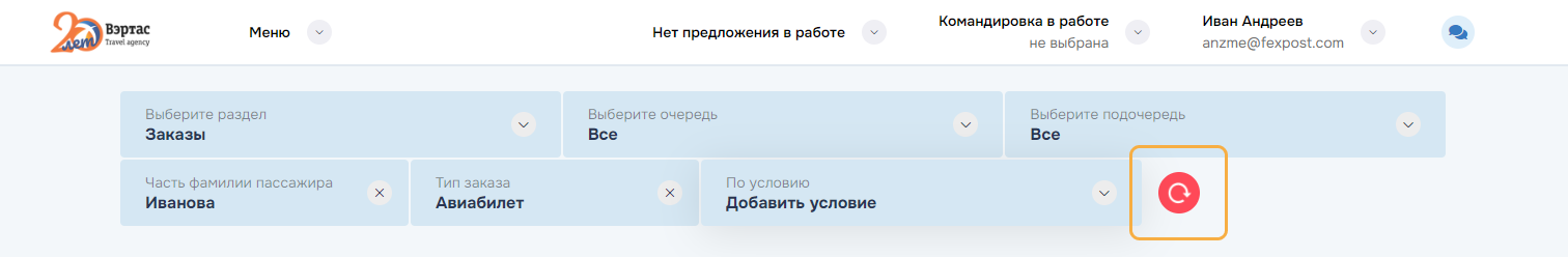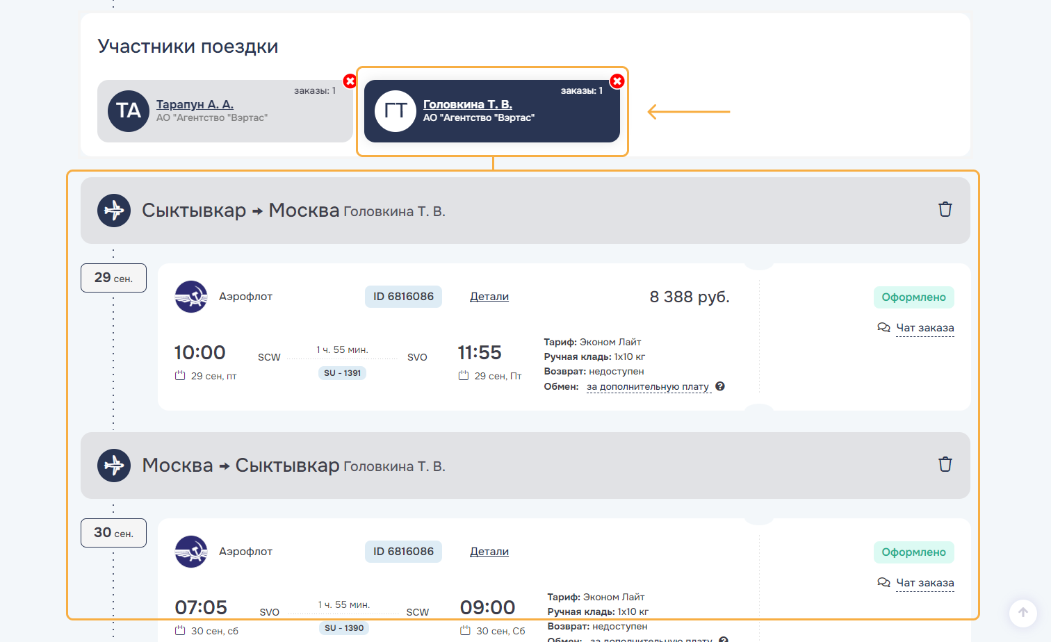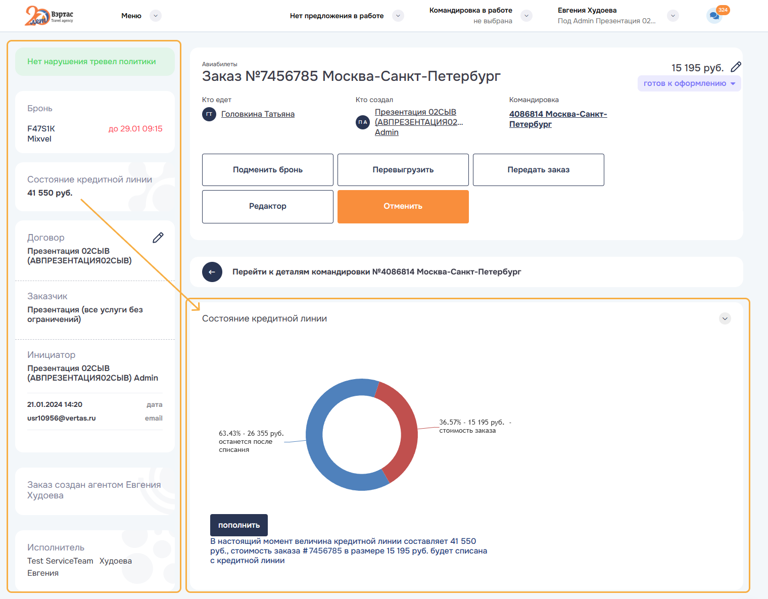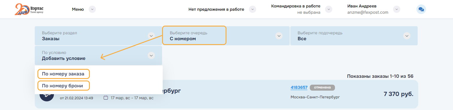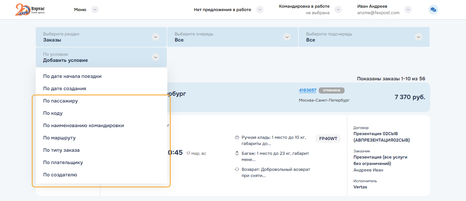 3. ОтменитьОтменить командировку и все брони/заказы командировки. Успешно отмененные заказы переводятся в статус