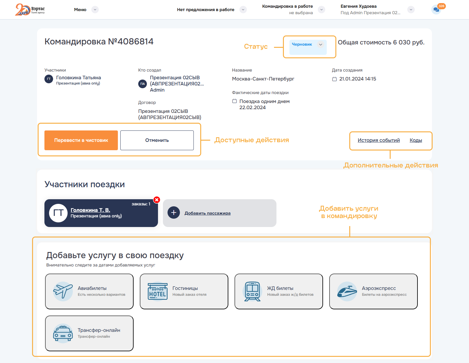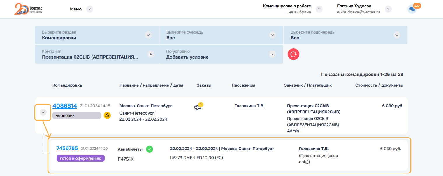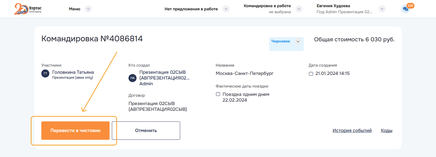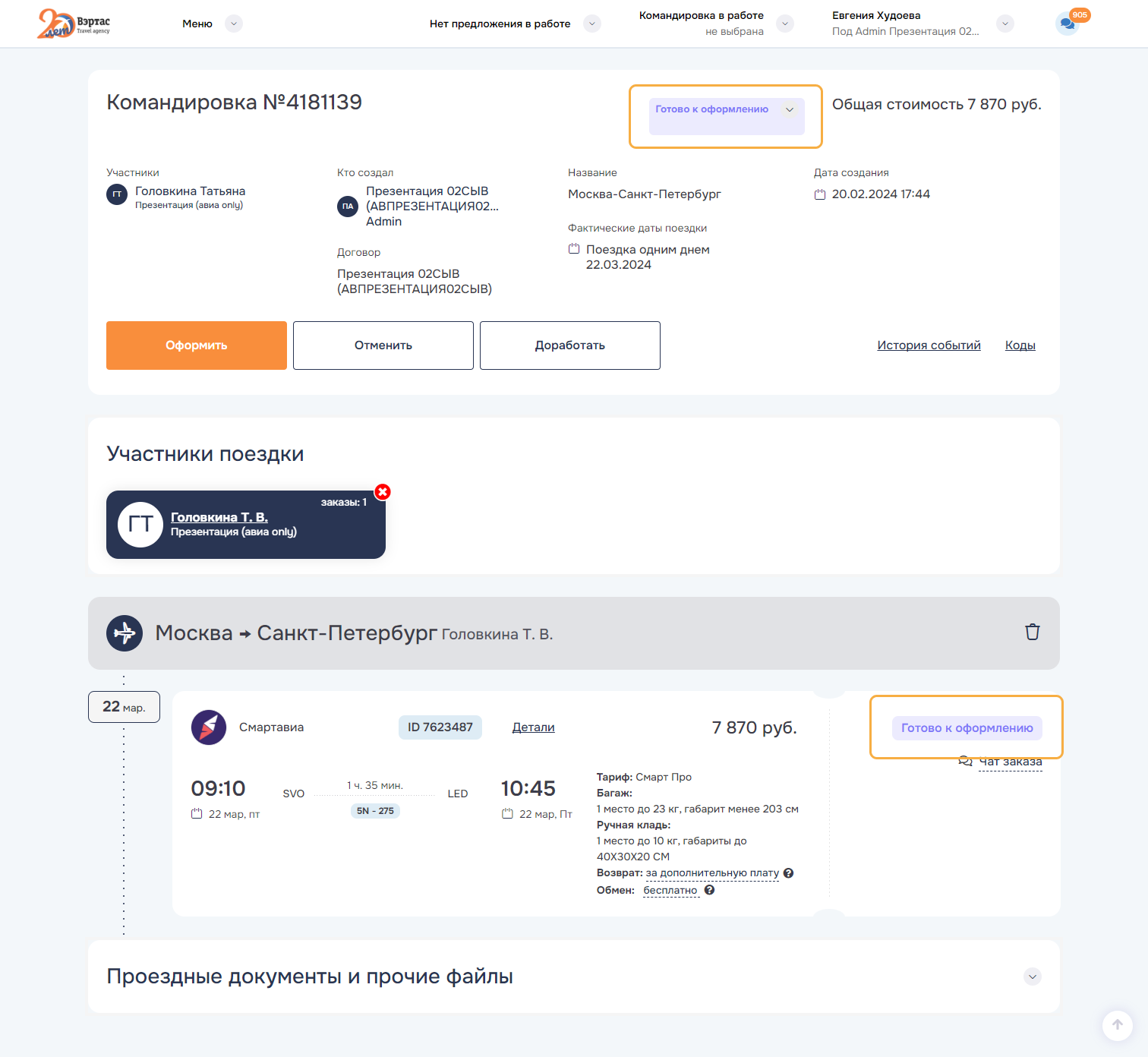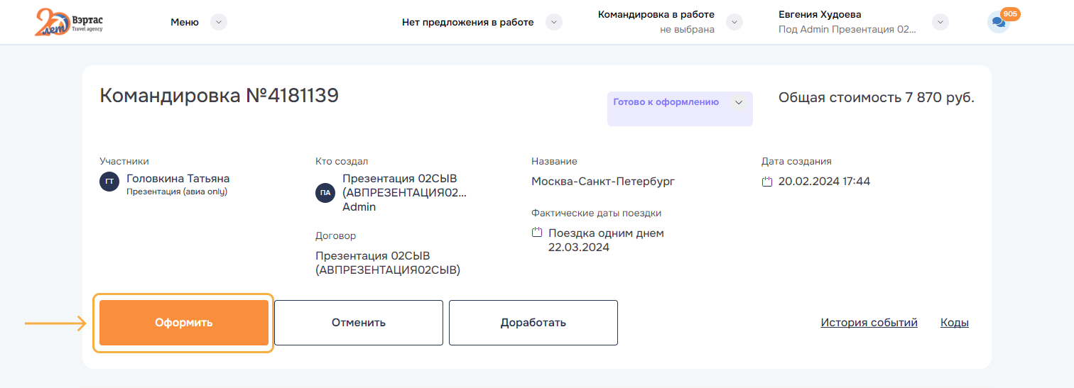 Готово к оформлению — это командировка имеющая утвержденный состав заказов и услуг.