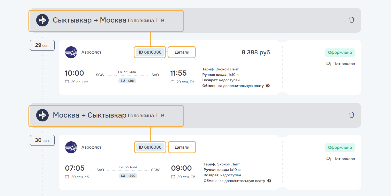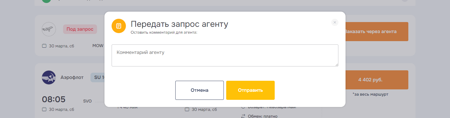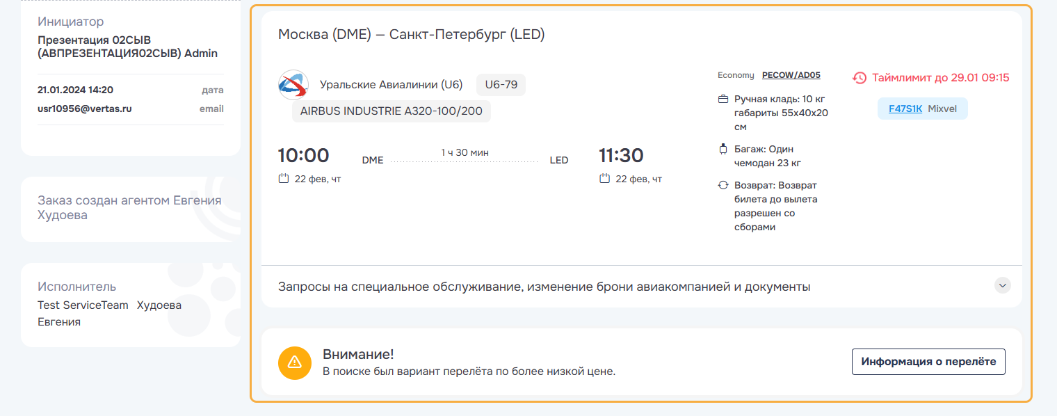 В случае возникновения ошибки при автоматическом оформлении услуг заказ по соответствующей услуге передается на обработку в Агентство и переводится в статус