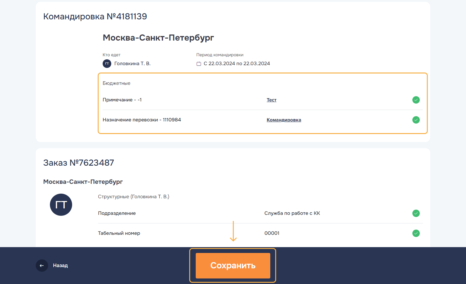 Выполнен. Командировка, все заказы которой находятся в состоянии